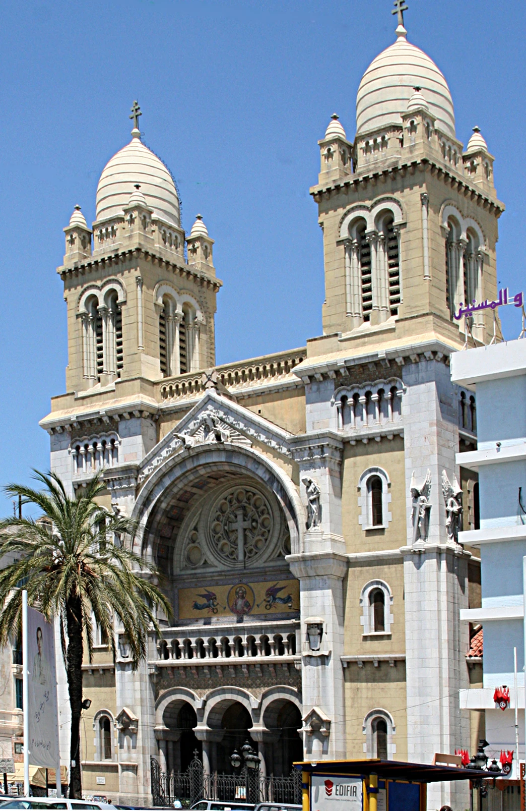 Bâtie dans un style romano-byzantin, la cathédrale St Vincent de Paul fut construite entre 1893 et 1897. Elle porte le nom de saint Vincent de Paul, le fameux fondateur des lazaristes et des filles de la Charité et qui fut — alors qu’il était jeune prêtre — capturé puis vendu comme esclave à Tunis au tout début du XVIIe siècle. L’édifice a accueilli notamment le pape Jean-Paul II en visite en Tunisie en 1997.