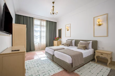 Découvrez l’élégance intemporelle de notre établissement. De l’architecture Art nouveau de notre façade au raffinement feutré de nos chambres et suites, parcourez notre galerie pour un avant-goût de votre prochain séjour.