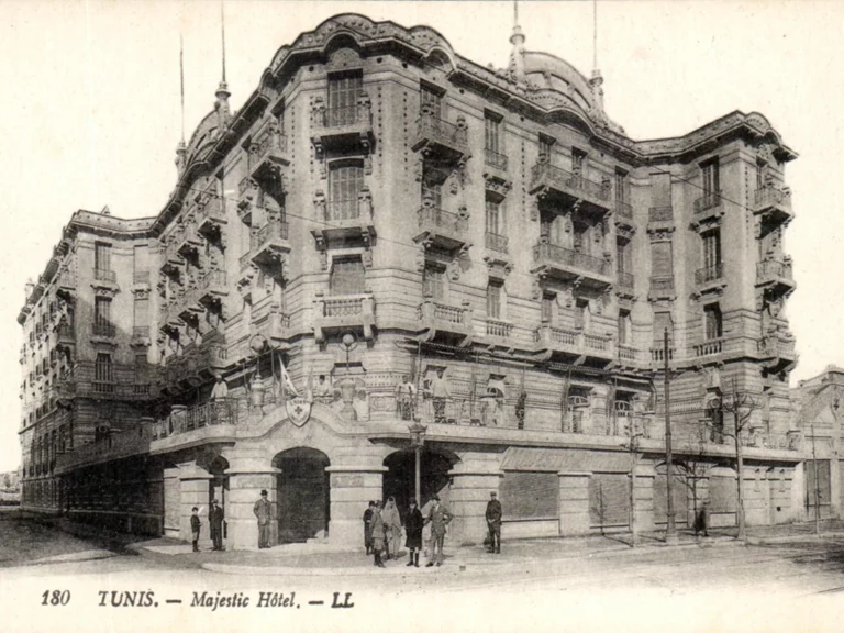 Achevé en 1913, le Majestic Hôtel, à l'époque seul Palace de la capitale, Grand hôtel à Tunis qui appartenait à René Kisraoui